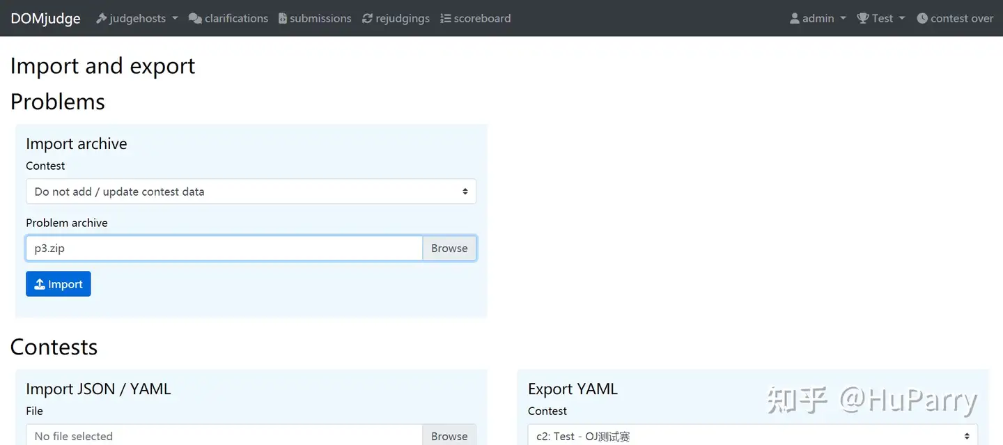 打包好一切后,上传即可,DOMjudge会自动解析并生成题目。